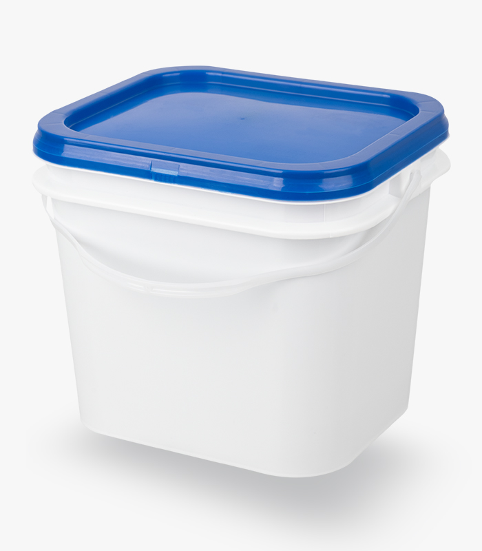 Opções de alças que facilitam o transporte e manuseio. Acabamento In Mold Label pote e tampa: Imagem e marca integradas ao balde com alto padrão visual.